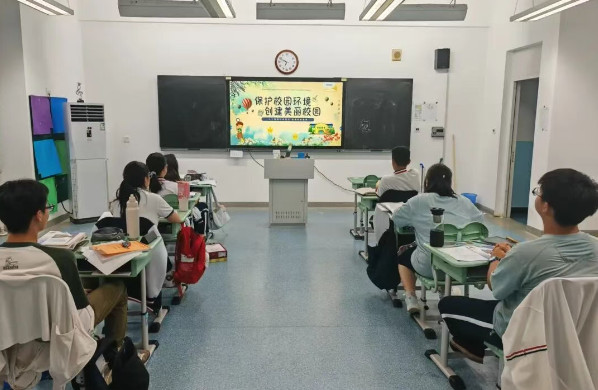 此外,各班级明确了具体的环保行动指南,鼓励各位学生从日常小事践行环保。1.要将垃圾入袋后分类投放,确保垃圾不落地;2.爱护校园公共设施,不在桌椅、墙面上乱涂乱画;3.珍惜绿色资源,不践踏草坪、不损坏绿植;4.每日按时打扫教室,擦净黑板、摆齐桌椅,保持学习环境整洁;5.同时积极参与植树、校园清洁等志愿活动,用实际行动为美丽校园建设出一份力。