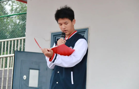高一(3)班的边宏博同学作为学生代表发言,他强调:少年智则国智,少年富则国富,少年强则国强,天戴其苍,地履其黄,纵有千古,横有八荒,前途似海,来日方长。