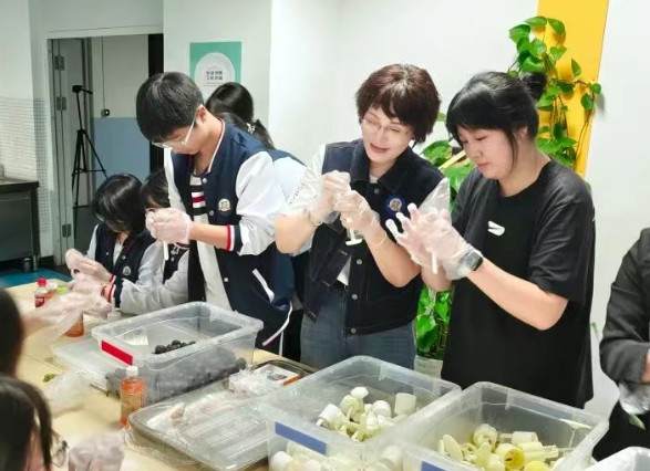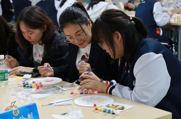 手工DIY区,涵盖月饼、团扇、花灯三类制作体验。学生亲手揉制冰皮月饼,成品可打包带回或现场分享;花灯制作中,大家既能搭建传统兔子灯,也能自由创作现代款式;团扇绘制环节,美术老师从旁协助,助力学生勾勒专属团扇。同学们借着手作,传递对中秋的喜爱与喜悦。