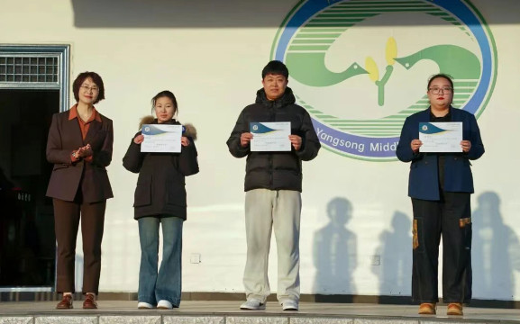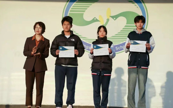 高二(4)班、高一(1)班、高一(3)班,张姝敏校长为获奖班级代表颁奖,表彰他们在班级日常管理中的全面出色表现