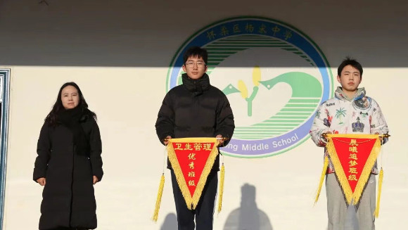 晨光熹微中,升旗仪式正式拉开帷幕。主持人陈琳涵同学清脆的声音响彻操场,全体师生整齐列队,向右转立,静待出旗。
