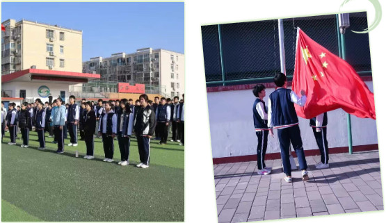 “升国旗,奏唱国歌!”全体师生肃立立正,脱帽行注目礼,嘹亮的国歌响彻校园,鲜艳的五星红旗迎着朝阳冉冉升起、迎风飘扬。李晓艳老师、何文生老师上台领唱国歌,浑厚有力的歌声饱含着全体师生对祖国的热爱与敬意,家国情怀在每个人心中深深扎根。